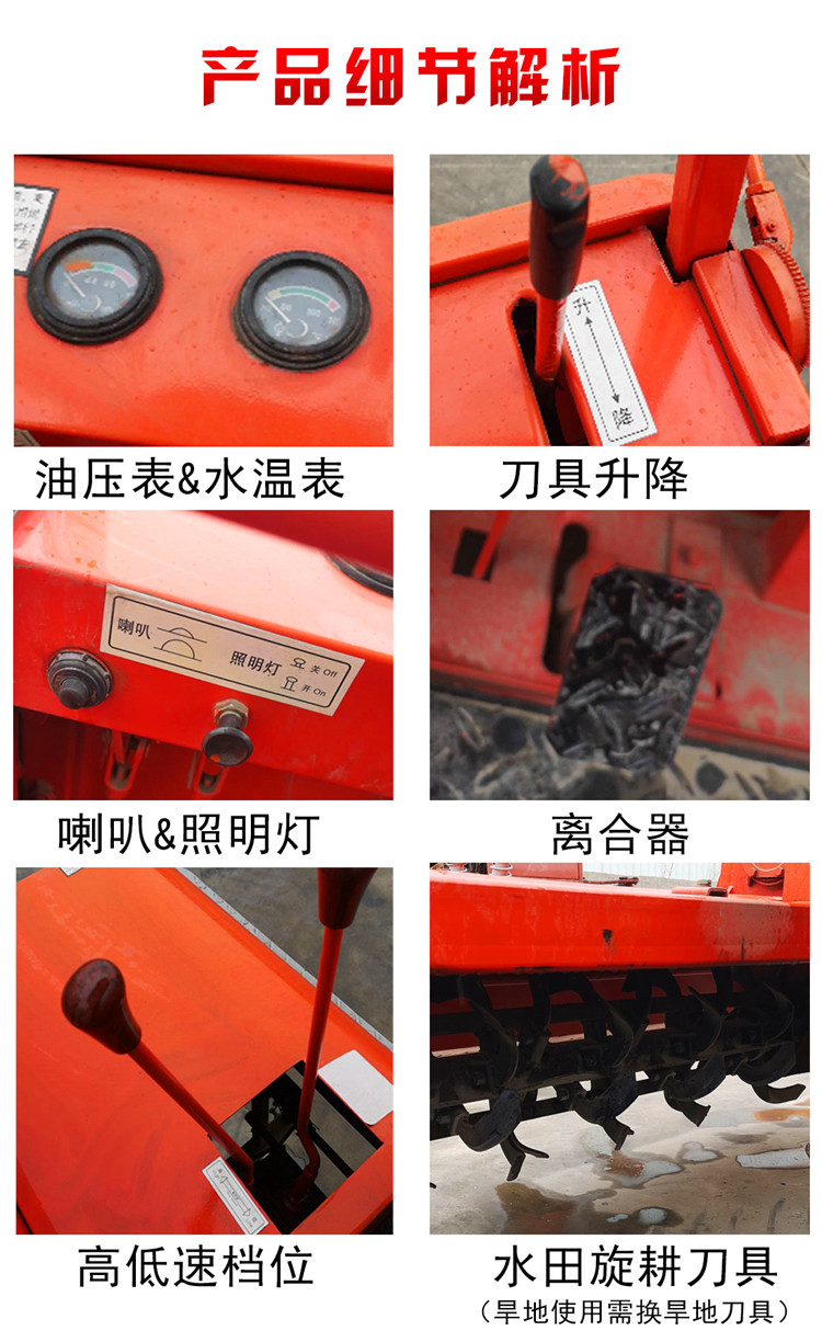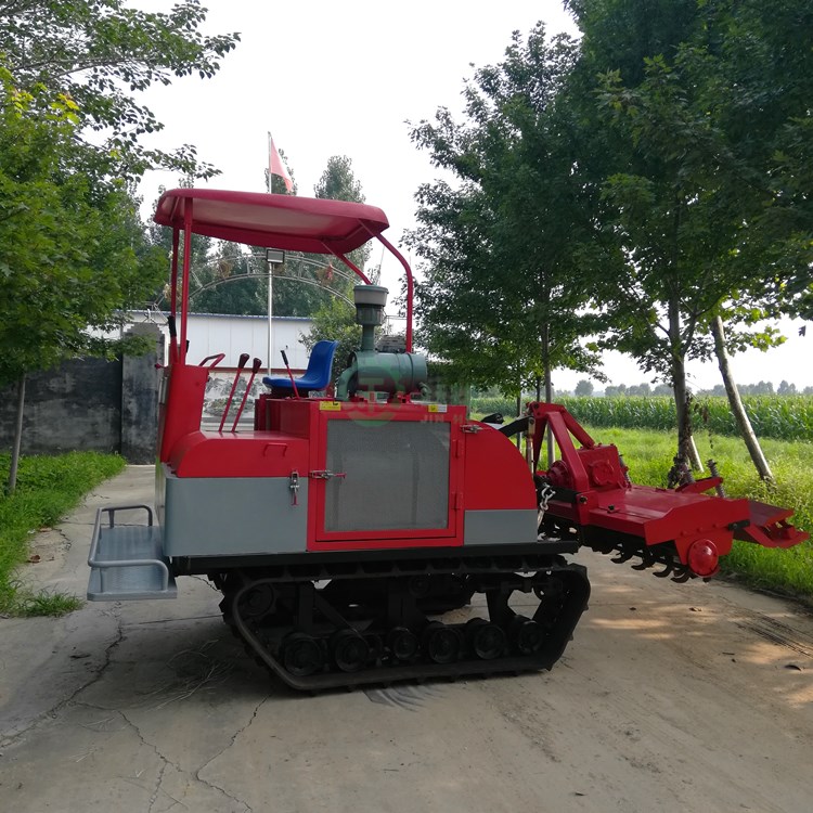 产品详情:履带式水旱两用履带式旋耕机是一种拖拉机,行走设备由行走轮和张紧轮构成。稻田履带式旋耕机,水旱两用农用种植机器,多缸大功率中耕轮,支撑轮,主动轮和履带。行驶时,主动轮绕在履带上作圆周运动,并且支撑轮在履带的轨道上向前或向后滚动,有着压力低的优点。每单位面积的土壤和对土壤的不错附着力(不易打滑)等,在湿润和柔软的土壤中具不错的通过性能,牵引效率高。