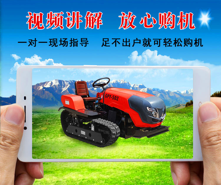 产品详情:履带式拖拉机是一种拖拉机,行走设备由行走轮,张紧轮,支撑轮,主动轮和履带构成,行驶时主动轮绕在轨道上作圆周运动,支撑轮向前滚动兼具单位面积土壤压力低,对土壤的附着力好(不易打滑)等优点,在湿润和柔软的土壤中具备不错的通过性能,以及牵引效率高。