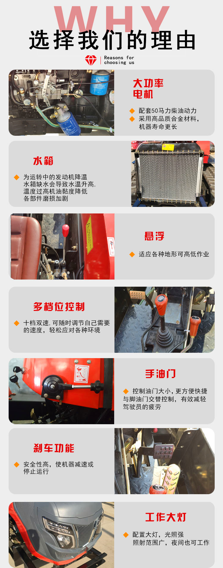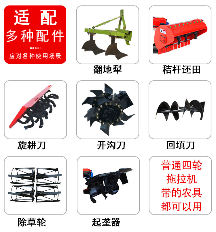 - 用途旋耕、开沟、打药、运输等
