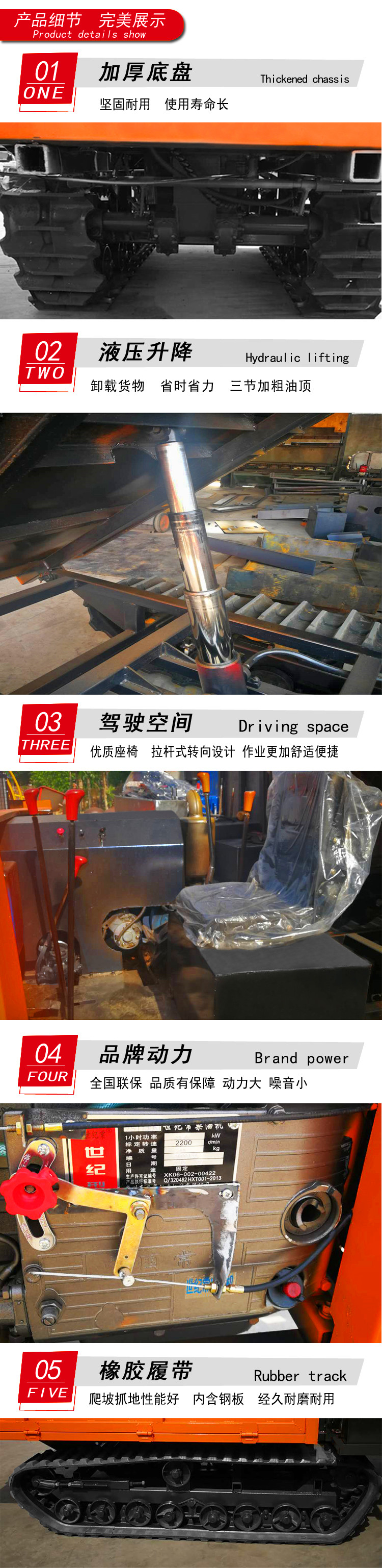5.牵引力大,爬坡抓地性能好,运输能力强。