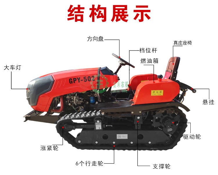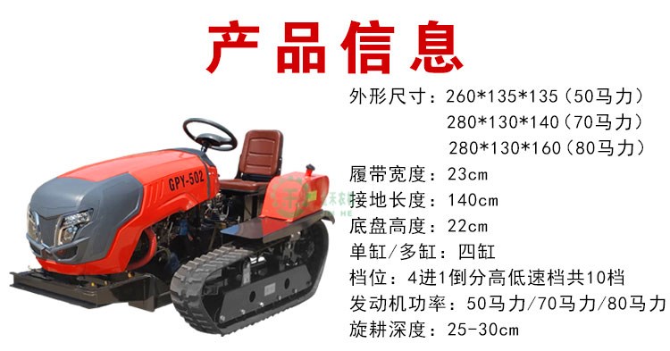 产品详情:履带拖拉机,在履带上走动:1.低接地率,以保障土壤;2。牵引力大,操作优势显著3。超强的通行性和爬坡能力,与轮式拖拉机相比之下使用范围更广,对土壤营养的破坏更小。选项三点悬挂连接方法,可与轮式拖拉机和农具配套采用,下降投资成本。更换工具便捷,简便,功率输出大,马力大!