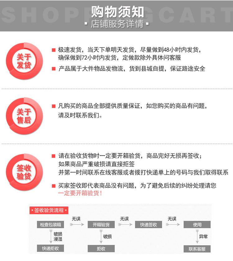 如果由于非人为因素而在一年内由于产品质量而需更换机械零件,除了免费更换外,公司还将担负零件的包装和运输开销。安全和声誉保证:只需事先支付少量定金,您可以快递物流和交货,然后在货物抵达后支付余额。