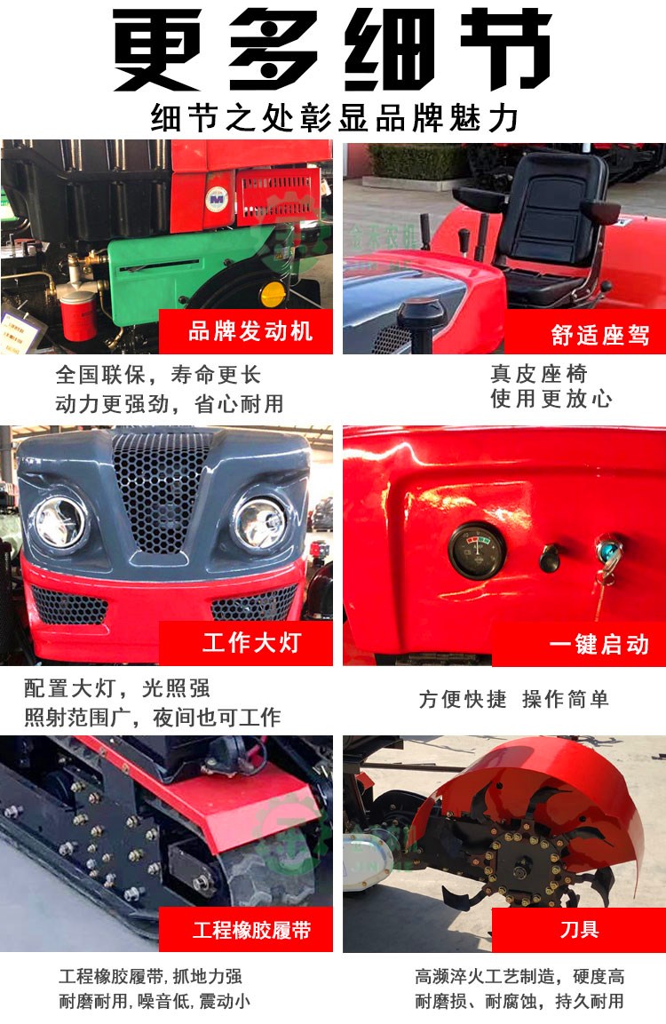 - 可配农具打药、推土、施肥、深耕、秸秆还田等