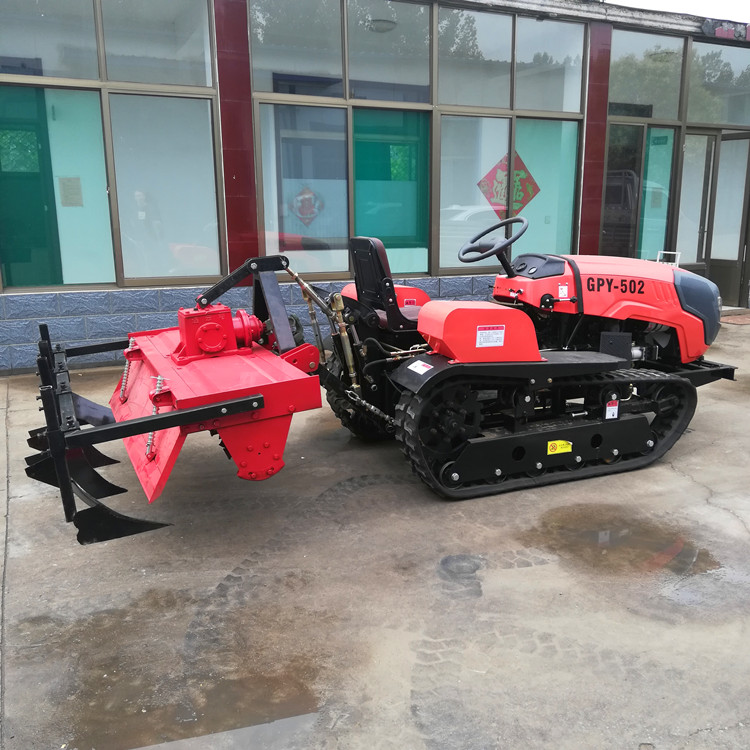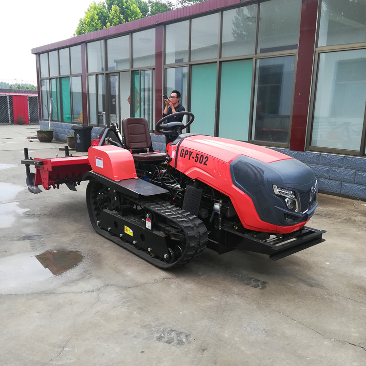 履带式拖拉机,也称之为链式履带式拖拉机,使用履带行走:1.低接地率,以维护土壤。牵引力大,操作优势显著3。超强的通行性和爬坡能力,与轮式拖拉机相比之下使用范围更广,对土壤营养的破坏更小。选项三点悬挂连接方法,可与轮式拖拉机和农具配套使用,减低投资成本。更换工具便捷,简便,功率输出大,马力大!