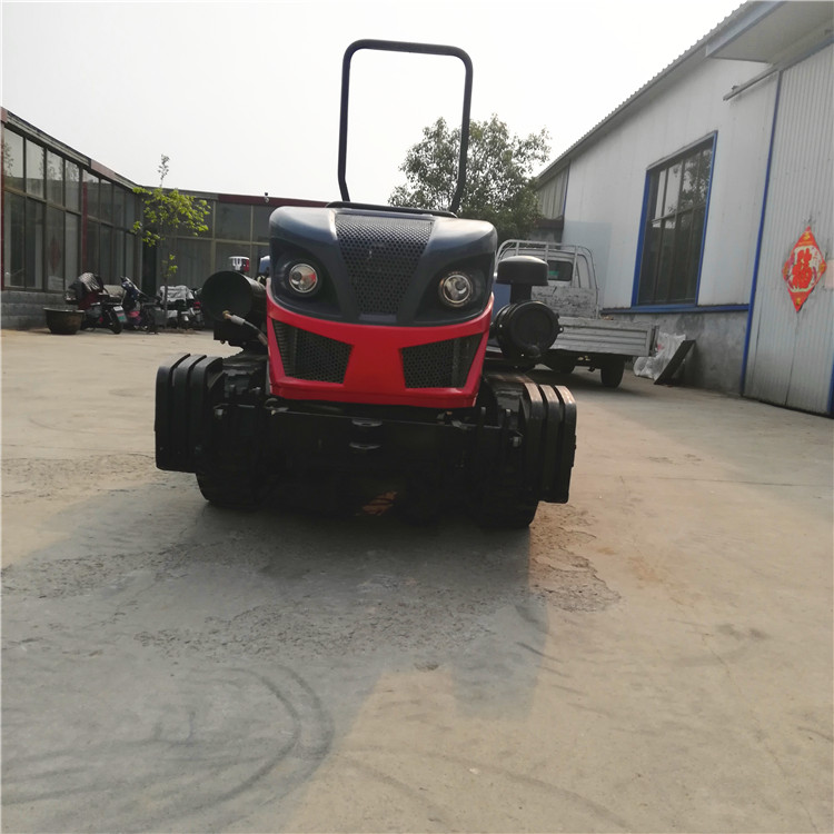 产品详情:拖拉机莱动履带式拖拉机,功率为50马力。行走设备由导轮随动轮,支撑轮,主动轮和履带构成。行驶时,主动轮绕着履带绕圈作圆周运动,支撑轮在履带的履带上向前或向后滚动,兼具单位面积土壤压力低,与土壤的附着力好(不易打滑)等优点,在湿润情形下有着不错的通过性能土质柔软,牵引效率高。 履带式拖拉机与轮式拖拉机不同,它由一圈环形轨道支撑在地面上,履带与地面触及,刺骨插入土壤中,驾驶者未接地。通过驱动扭矩,驱动轮通过驱动轮上的轮齿与履带板截面销之间的啮合从后方连续滚动履带。履带的接触地面的部分向地面强加反向力,并且相应地,履带需前反作用力pk。pk的反作用是促进拖拉机向前的驱动力。轮式拖拉机的驱动力直接传递到行走轮。与履带式拖拉机不同,其驱动力pk通过缠绕在驱动轮上的履带传递到驱动轮的轴上,然后该轴通过拖拉机的车体传递。在驱动轮上。当驱动力足以克服所携带的农具的滚动阻力和牵引阻力时,支撑轮在履带的上表面向前滚动,以便拖拉机可以向前移动。轮连续地将履带分段地向前滚动,然后通过导轮将其铺展在地面上,支撑轮可以在履带敷设的履带上连续滚动。可以看出履带式拖拉机是由履带式拖拉机实现的。履带与地面之间的相互作用通过驱动轮的驱动扭矩产生,并且驱动力大于滚动阻力和牵引阻力之和。可以装设旋耕机开沟机,@nz等工具@,杀米机等