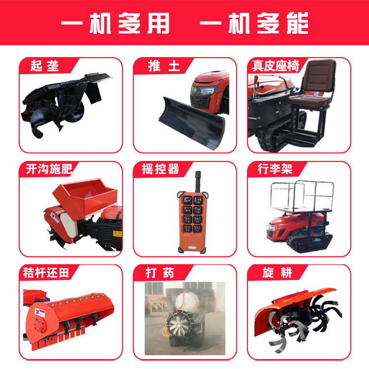 - 可配农具打药、推土、起垄、秸秆还田等