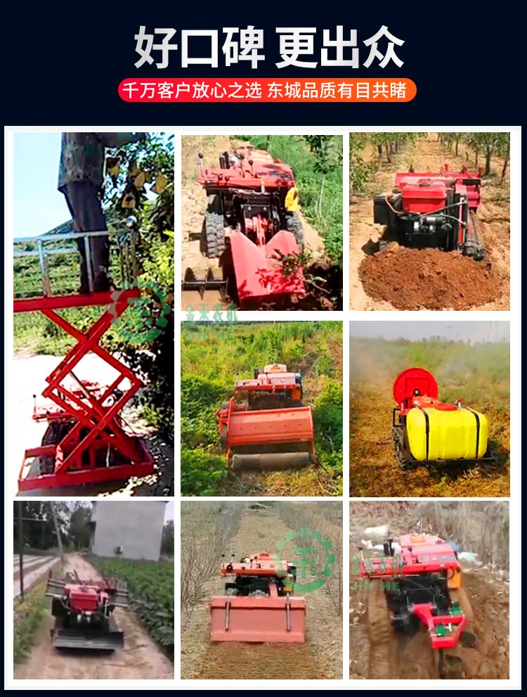 产品详情:履带旋耕机升级型号,大小比旧型号要短,适合于行距狭窄或大棚的果园,设有升降平台,化解了采摘水果的疑问;智能遥控,全然解放了劳力。可以增加操作功用,一机多用,效率高,成本低!适用于各种山地,丘陵,冲积平原,旱地,温室,果园,狭窄地面作业,省心。适用于各种土壤:可以采用冷冻土,硬土,黏土,黑土,山地和软土。履带式沟肥施肥机可实现果园,小块农田,温室,茶园,丘陵和山峰,大型机械无法进入,等候山势和土壤质量的变化。精致,重点低履带式挖沟和回填机旋耕机杀草机。