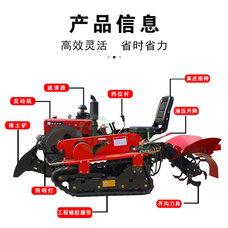 履带式田园管理机,用以山区,果园,温室,丘陵,荒地,冲积平原和其他地形的农业生产。该机器的农业装置集旋耕,开沟,起垄,回填,除草,喷洒和施肥为一体。它依赖柴油发动机。该动力传动设备可以完成除草,施肥,翻耕等工作,其中有15马力,18马力,22马力,35马力,36马力等型号,尺寸宜于,便于行走。该机体积小,重量轻,机能多样,构造连贯,操作简便等特性,适当一般而言农户。它可以每小时转动2-5英亩。您可以根据需要选项旋耕机型号。