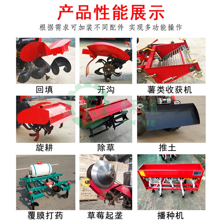 - 可配农具埋藤机、施肥机、碎草机、草莓起垄器、犁地机、薯类收获机等