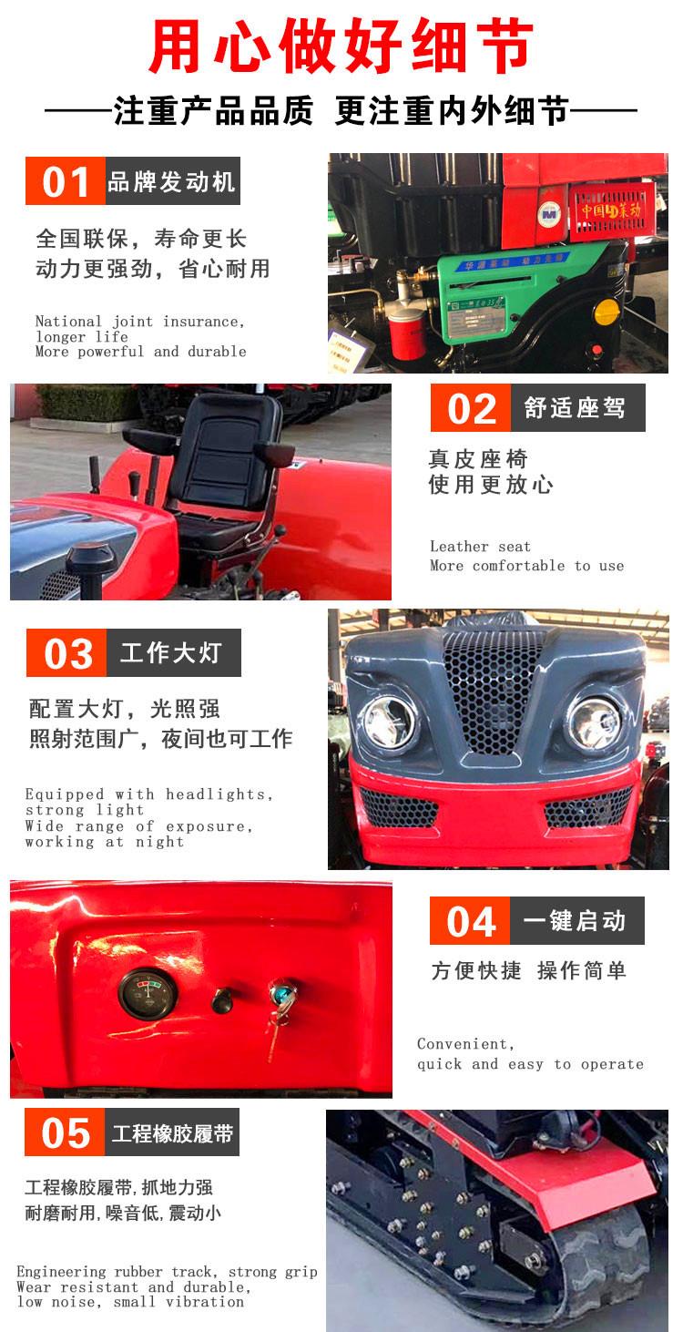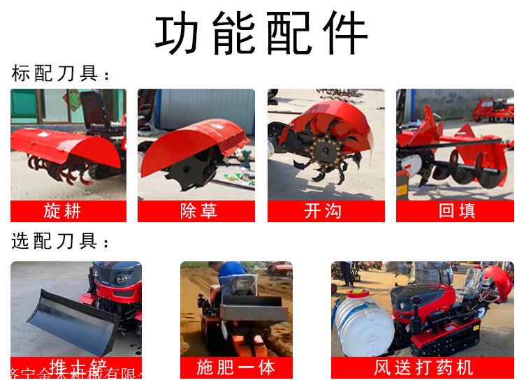 产品详情:旋耕机,开沟刀,起垄回填机,除草轮!履带轮防滑性能安定,并用到全国品牌引擎保修,质量获得保证。每小时可工作3-5亩,大大节约了人工,可选配喷洒机,水渠施肥回填机,推土铲等农具,确实实现了一机多用。